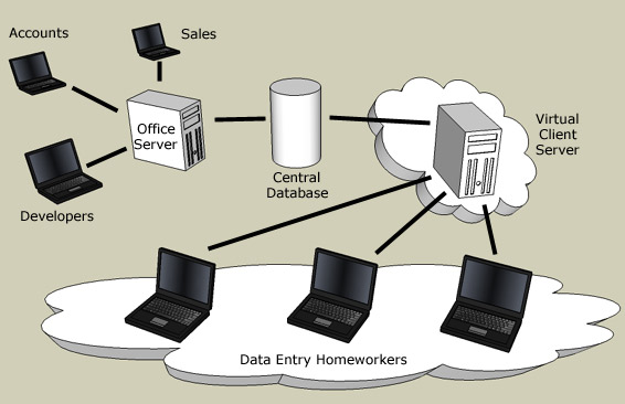 The Virtual Client allows the Data Entry workers to log-on to a secure system from their own home PC. No special software or expensive hardware is required as the users only need a web browser to work with. Using the Distributed Phone system each Clerk can be assigned their own phone number.